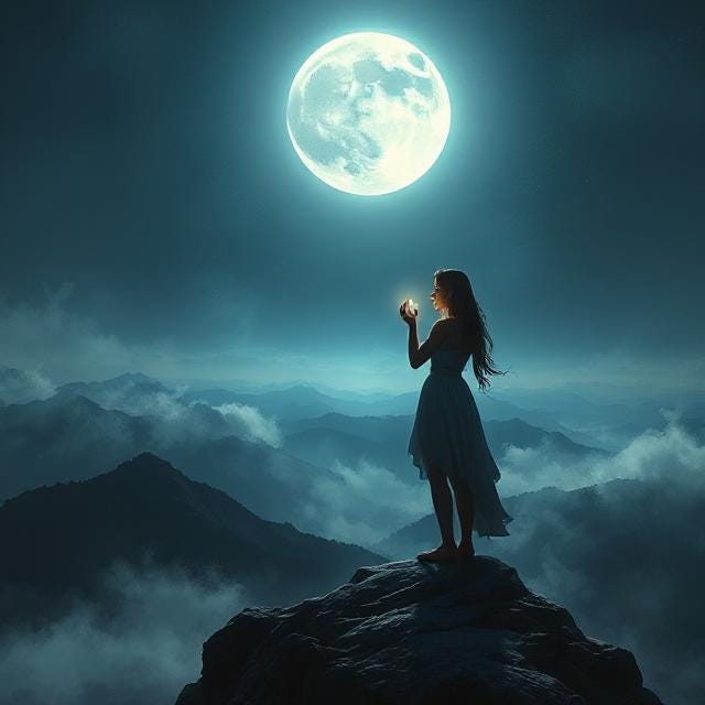 Gaia and Elpida were on the mountain summit enjoying a cup of hot chamomile. Gaia lay down in her lap and, relieved by the course of events, fell asleep.